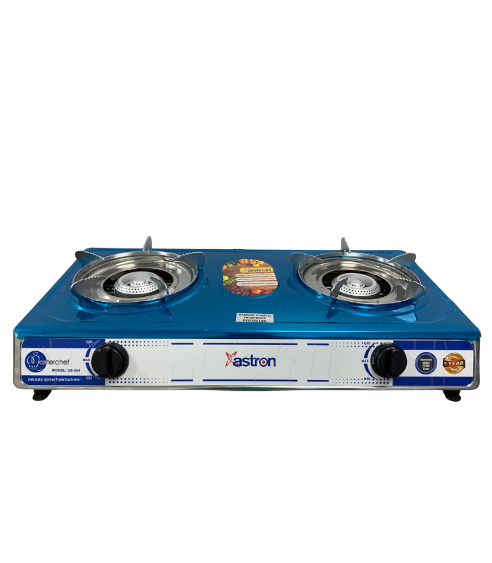 The Astron GS-288 Double Burner Gas Stove is a heavy-duty cooking appliance designed for efficiency, durability, and style. With a teflon-coated top panel and cast iron burners, it delivers reliable performance for everyday cooking. Its space-saving design and automatic ignition system make it ideal for modern kitchens seeking both function and convenience.