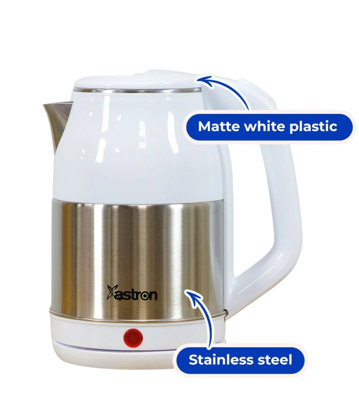 A simple, budget‑friendly electric kettle by Astron with 1.8‑liter capacity, fast boil (1500 W), auto shut‑off, and safety protections. Suited for everyday boiling tasks such as water for tea or instant meals.